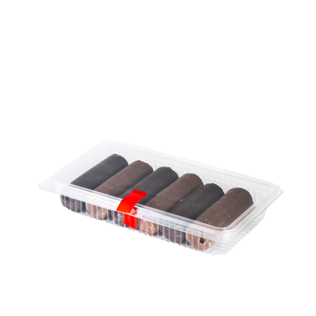 Square biscuit filled and coating with dark chocolate